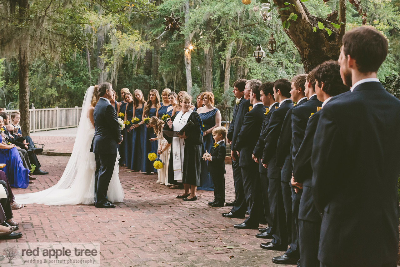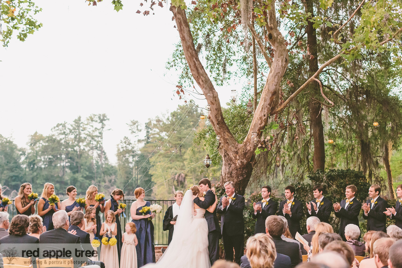 Venue: The Millstone at Adam’s Pond | Floral Design: Weddings by Jennifer – Lexington, SC | Music: Blue Denim Band from Montgomery, AL | 1st Dance Song: “Swept Away” Avett Brothers | Wedding Catering: The Southern Way | Hair/Makeup: Cline Salon | Wedding Cake: Publix | Wedding Dress: Vera Wang | Bride’s Shoes: Badgley Miscka & Frye Boots | Bridesmaids’ Dresses: Alfred Sung | Event Coordinator: Kristy Polk | Officiant: Rev. Doc Ginger Barfield | Ceremony Musician: Mike Meadows | Veil/Hair accessory: Vera Wang | Jewelry: Mikimoto Pearls | Groom’s suit: Jos. A Bank | Groom’s shoes: Cole Hann | Groomsmen’ suits: Jos. A Bank