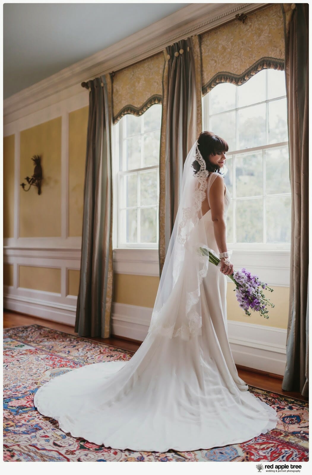 we had so much fun with Elise on her bridal portrait session at The Lagare Waring House in Charleston SC. Elise was a vision of classic elegance in her beautiful wedding dress which she converted into two different looks on her wedding day. she chose to wear her lace “veil” look for her ceremony and then changed into her vintage crystal studded “bolero” and “head piece” look for her reception.